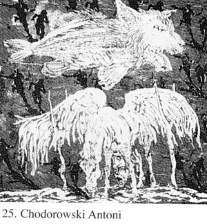 Zlicytowano także pracę Antka – linoryt na papierze 42×30 cm „Bez tytułu”.